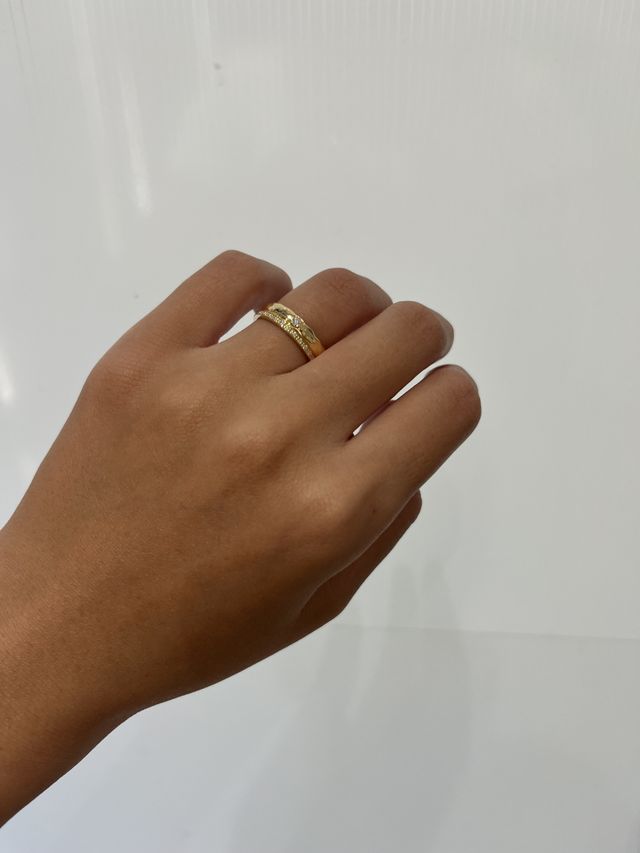 結婚指輪だとプラチナが王道ですが個人的にゴールがよく自分らしさのある指輪が作れたと思っています。