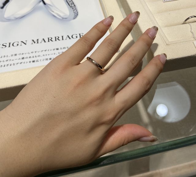 同じデザインでも色はもちろん、太さを変えることができたり叩き加工を施したりと、バリエーションがたくさんあります。また、ロゼチナといったこのブランド特有のお色味もあるので、他と被りたくない方、自分たちらしさを求める方にはぴったりだと思います。