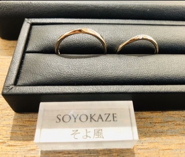 名前の通りそよ風のような流れるデザインで、大変珍しく人目を引くデザインだと思いました。しかし個性的ながらも尖りすぎず品のあるデザインで美しいリングだと思います。また選ぶ素材(プラチナやロゼチナなど)によって大きく印象が変わるリングだとも思いました。