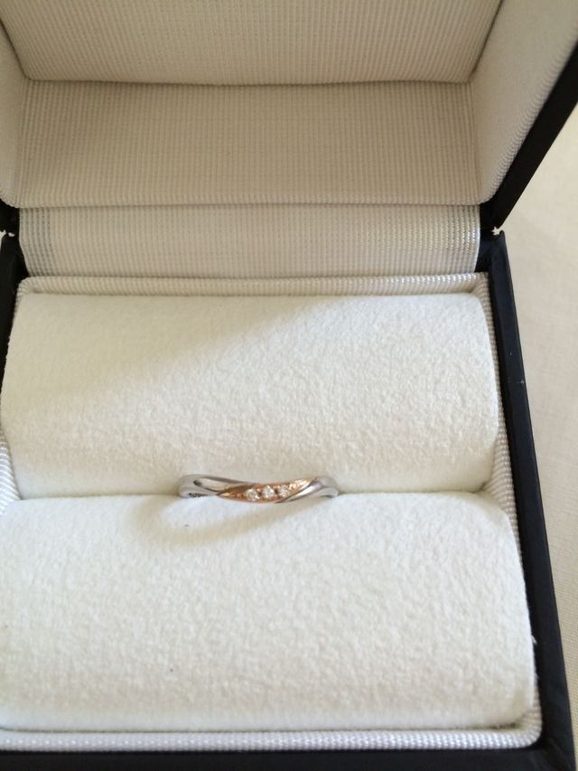 細身で波形、ピンクゴールドのコンビのリングを探していたところこちらのリングと出会いました。まさに理想的なリングだったので即決しました。メレダイヤが3つ入りコンビですが派手すぎないデザインも気に入りました。婚約指輪もピンクゴールドのコンビだったので重ね付けしたときにぴったりだったのも決め手の1つです。