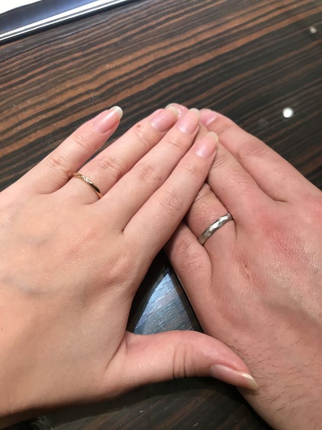 うち目のデザインにしたかったので、うち目でグロス加工が素敵なものにした。パートナーは合わせてうち目でマットなタイプに。セットのものではなかったが、うち目のデザインで合わせてペア感をだすことにした。パートナー共々お気に入りです。