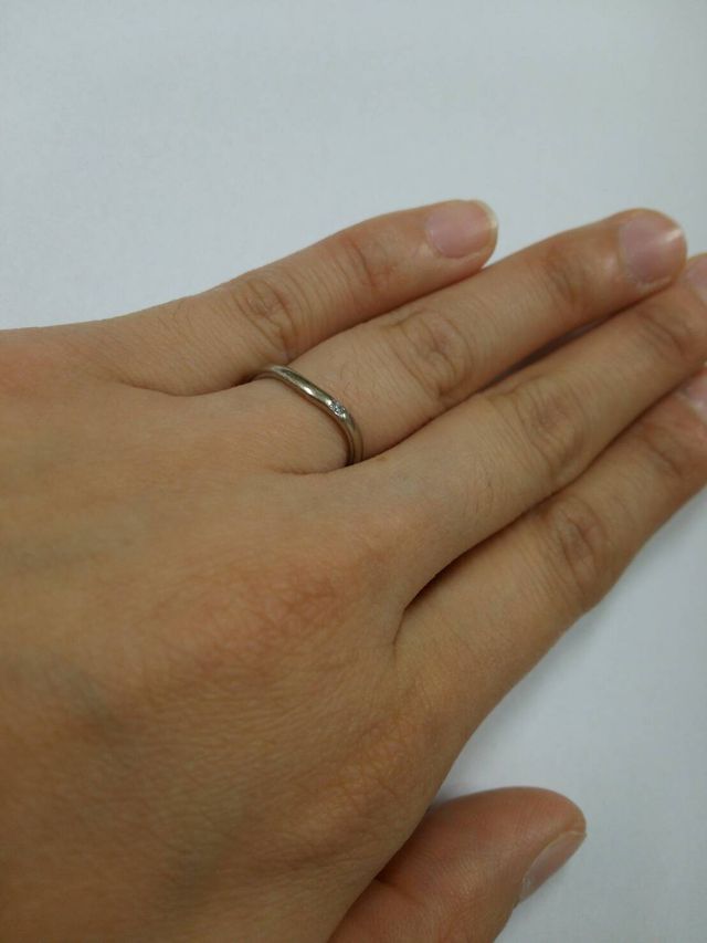 左右非対称な緩やかなカーブがとても素敵で、ひと粒ダイヤも入っていて可愛かったです。
