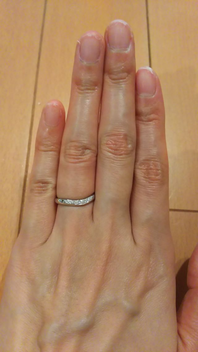 まず、v字かu字のウェーブになっていて、小さなダイヤモンドがついている結婚指輪が欲しかったです。その中でも、毎日つけるので、飽きがこないシンプルなものがよかったです。似たようなデザインの指輪はいくつかありましたが、この指輪はしばらくすると、つけているのかいないのかわからないくらい、指に馴染みます。ダイヤモンドの輝き具合も、普段使いには、ぴったりの輝きで、毎日大切に使っています。