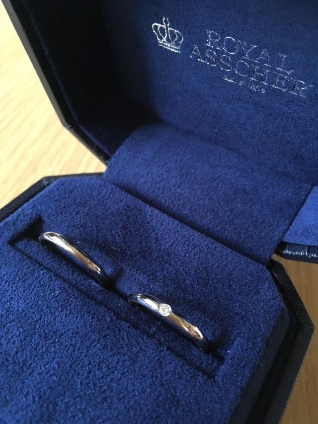プラチナとダイヤモンドのシンプルな指輪ですが、ずっとつけるものですので年をとってもいやらしくなく上品に使えそうだと思いました。私も夫も少し金属アレルギーがあったもので高品質なプラチナにも惹かれました。