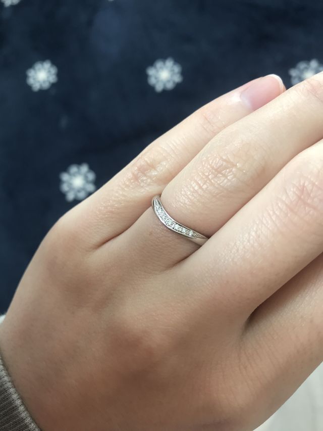 婚約指輪が比較的カーブの強いデザインだったので、とにかくぴったりと重ね付け出来るものを探しました。