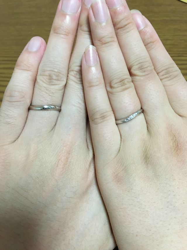 指輪になるべくお金をかけたくなかったのでダイヤなどついておらず、シンプルな物でいいと考えていましたが、たまたまインターネットでこちらの指輪を見つけました。素材がプラチナでないということで見た目や輝きが気になりましたが実物を見るとプラチナと遜色なくとってもリーズナブルで自分が憧れていたデザインがあったのでこちらにしました。