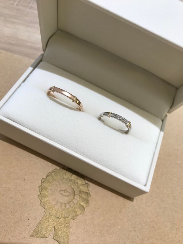 他にないデザインと、直感!!が決めてでした。人とかぶりにくい指輪を探していたのと、素材変更が自由に出来たり、自分たちの思いを叶えてくれる指輪に、やっと出会えました。ブランドのコンセプトもすごく気に入りました。