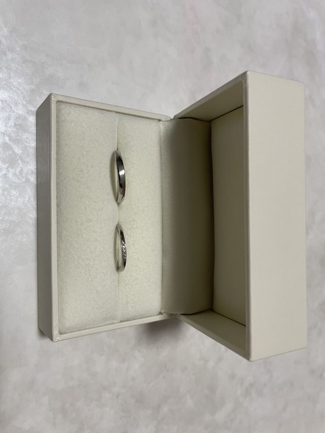 ただ、JKプラネットさんでは、店員さんが、極力シンプルを求める彼にどのくらいのデザインなら許容できるかを聞いてくださり、お揃いのデザインを探してくださいました。そのお心遣いがとても嬉しかったです。