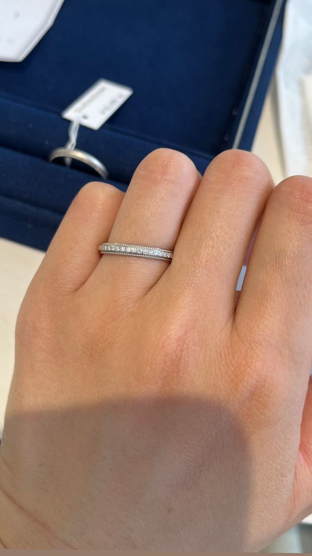 ただ、サイズ直しができないデザインなのでそこだけ注意です。他のデザインなら無料でできますが、こちらはミル打ちなので、3万円ほどかかります。
