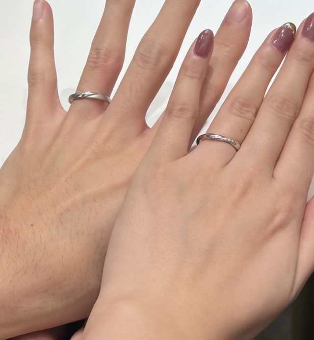 理由としてはシンプルすぎないことと、左手の薬指につけるとフィットするのがとても良いです。まっすぐだと変に左側に隙間が生まれてしまいました。