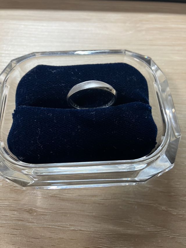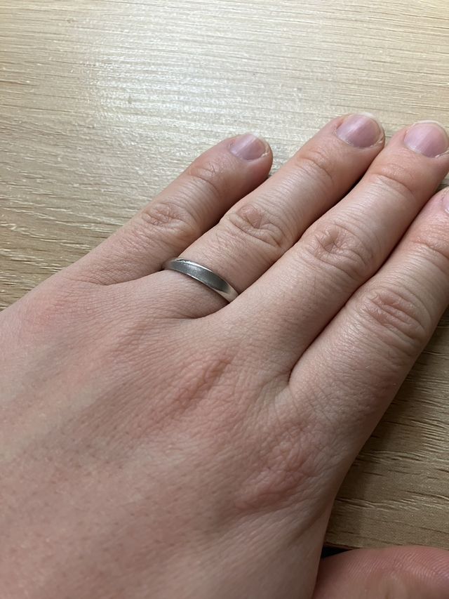 指輪の幅が数種類用意されていて、私は少し太めのデザイン、妻は少し細めのものにしました。ペアルックですごく気に入っています。