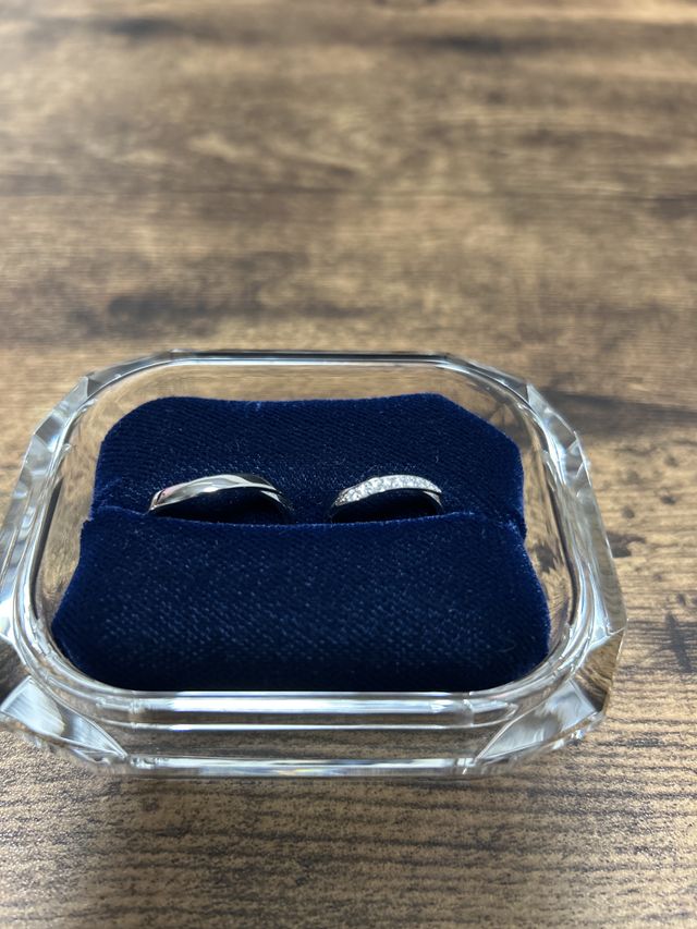 最近の流行りのデザインでとても気に入りました。刻印もオシャレに入り、種類も豊富でした。高級感があり、はめた感じもゴージャスな感じでした。ダイヤモンドもたくさん入ってるデザインにしたのでより高級感がでました。