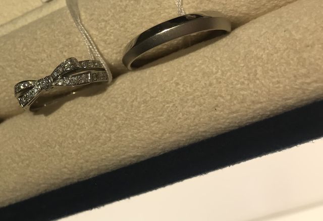 デザインが素敵で、価格がリズナブルな印象を受けました。着け心地が非常に良くて、結婚指輪をきっかけに、初めてジューエリをつける主人もかなり好評しました。2人はいろいろ試着したり、較べたり、していました。
