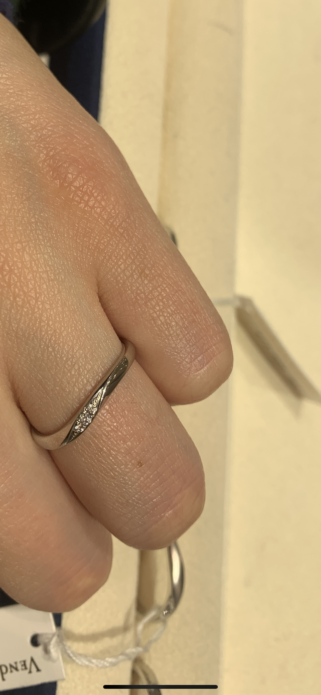 デザインがとても可愛く、カッコよくて2人でとてもお気に入りになった。金額的にも2人の予算内だったため購入をした。さまざまなものを見たがデザインや2人の意見が一致したため、今回指輪を購入させていただいた。