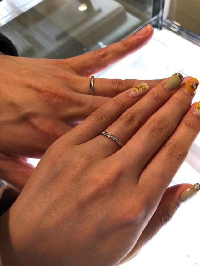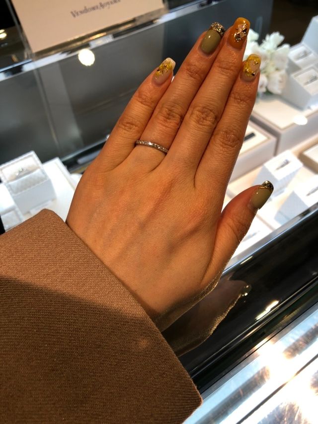 アフターケアが充実しています。デザインはどれもシンプルです。ハーフエタニティをたくさん試着させていただきました。派手すぎずかわいらしいイメージです。