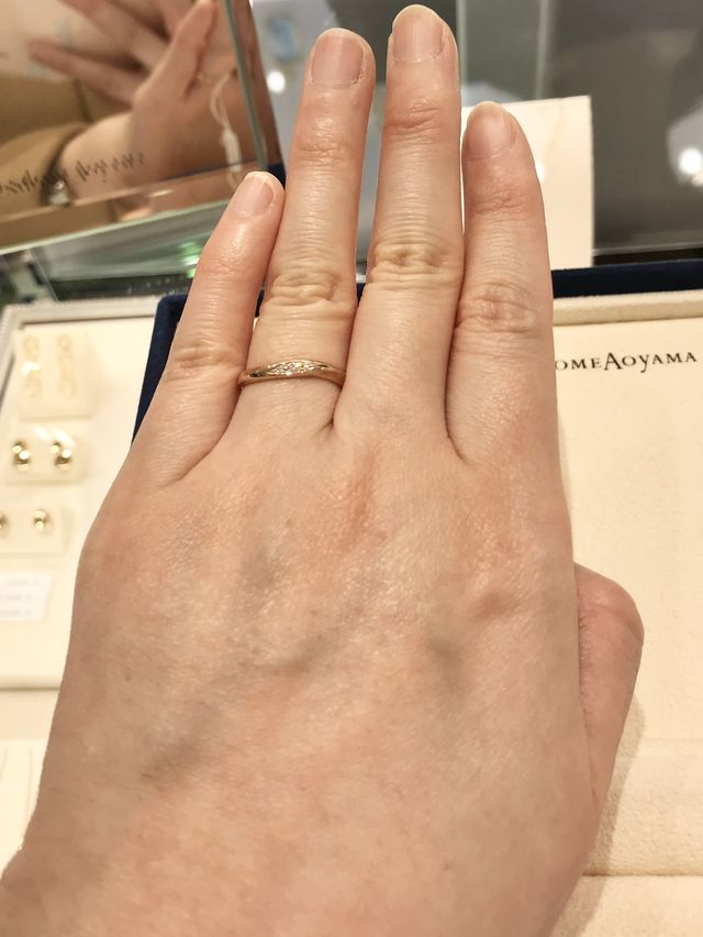 婚約指輪も同じお店で購入したので、すでに持っている婚約指輪と合う結婚指輪を探してもらえました。結婚指輪であれば少し太めのデザインがよいということや、サイズに関しても色々アドバイスしてもらえて満足のいくお買い物ができました。