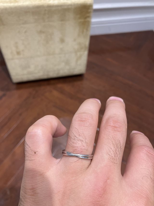 指輪といえば、シンプルな丸リングを想像していましたが、2つのウェーブが織りなすデザインにとても惹かれました。