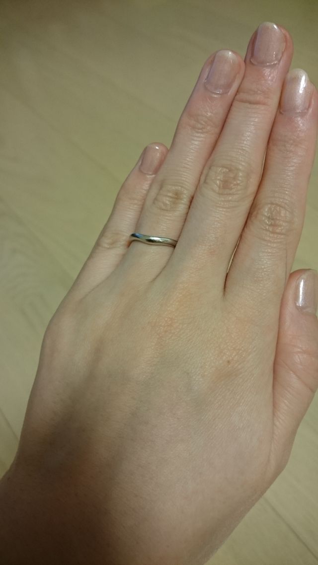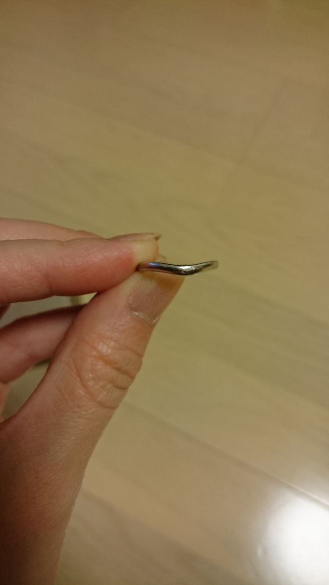 婚約指輪とセットではめても素敵に見えるようなデザインにしました。湾曲していることで、指も細く見えるのがお気に入りです。シンプルなデザインですが、一生身に付けていられるようなデザインがお気に入りです。つけているとき、指輪が回ってしまうことが少し悩みです。
