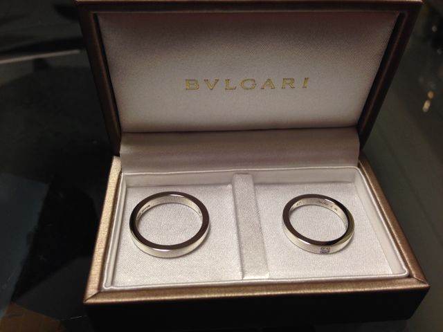 婚約指輪を選ぶときにいくつか有名なブランドをまわり、主人が一番気に入ったのがブルガリでした。デザインが他にない個性的で存在感のあるリングが多いと思います。婚約指輪がブルガリだったという事で、結婚指輪もブルガリで婚約指輪と重ね付けしてみながら決めました。