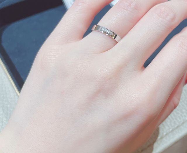 ずっとつける指輪で、冠婚葬祭でもつけられるものを選びたいと思いました。派手すぎず、でもダイヤが繊細に付いているものが好みでした。太さはそんなにないもので、丸みがあるものを選びました。ゴールドも悩みましたが、傷などにも強いプラチナで探しました