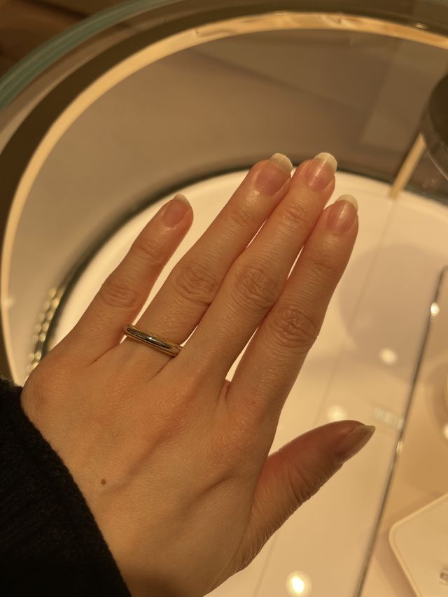 ティファニーはたくさんの種類があるので、自分の好みのデザインが見つかるかと思います。結婚指輪なのでどのブランドにも似たようなデザインのものはありますが、こちらで試着させていただいたどの指輪もつけ心地もよく感じました。