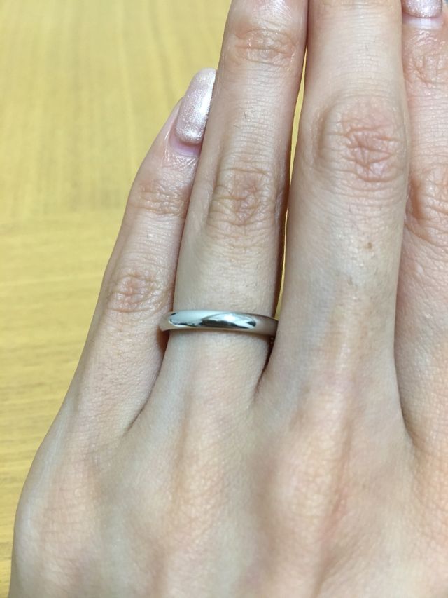 また、旦那さんの指輪も幅が3.5ミリ〜4ミリと太めです。シンプルながら少し他ブランドとは違う点が気に入り、購入しました。