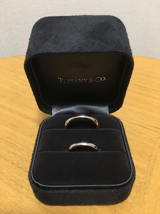 正直、ティファニーは私たちには「かわいすぎる」というイメージを持っていたので、検討しておらず、カルティエやブシュロンを見ていました。しかし結婚指輪の王道とあうこともあり、一応見ておこうと思い来店したところ、今の指輪が見つかりました。