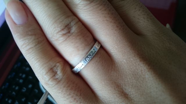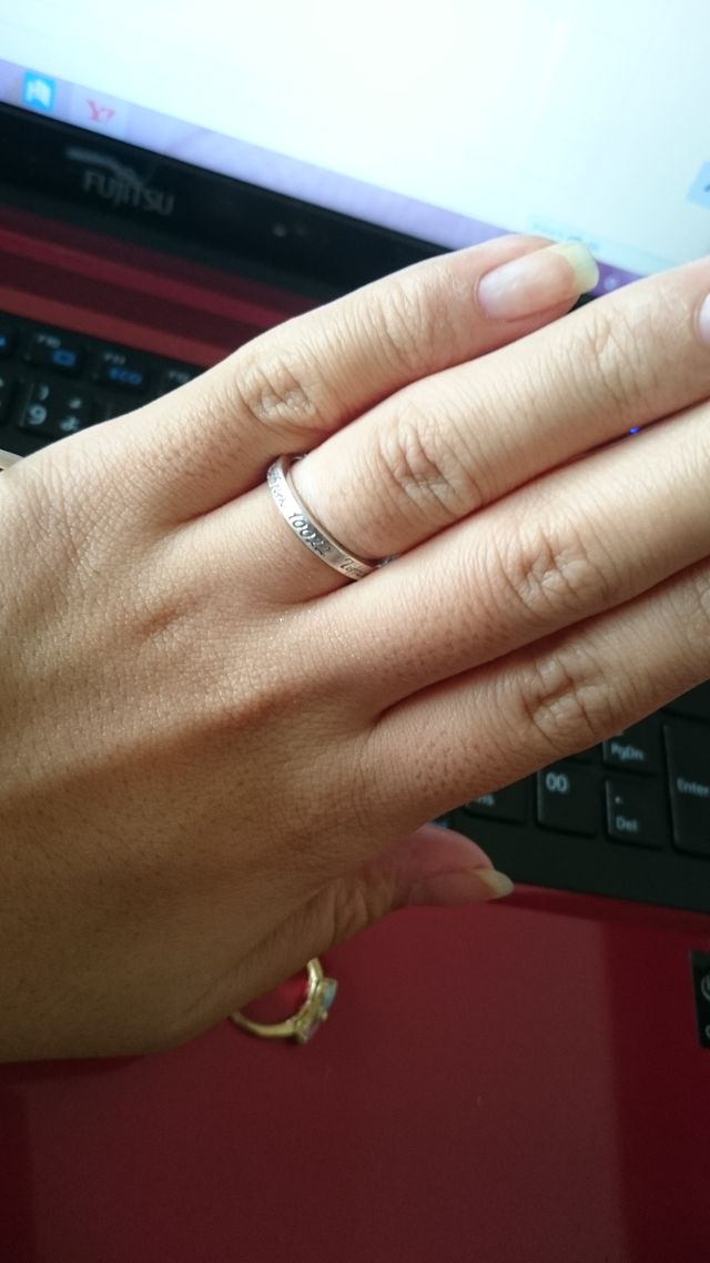 この指輪は男の人の手にもしっくりくる指輪だと思って購入しました。