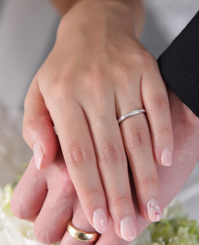 はめたときに邪魔にならない実用的なデザインであり、かつ華やかさもあり、試着した瞬間にこれだ!と感じました。