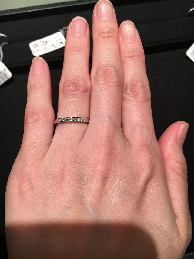 スタイリッシュでオシャレなエタニティリングだと思います。デザイン力の高さがさすがティファニーだと思いました。ダイヤモンドが飛び出ていないので日常生活において引っかかることがないデザインもおすすめです。