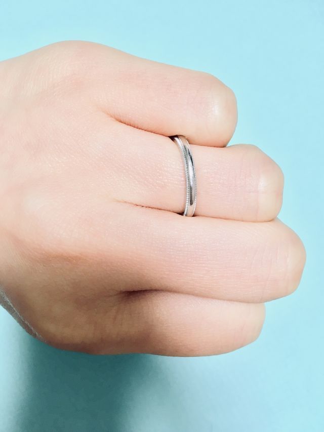 婚約指輪をティファニーのティファニーセッティングにしたため、結婚指輪もティファニーで選びたいと考えていました。シンプルで飽きのこないものがいいと思っていたため、プラチナでシンプルなデザインのものを中心に検討し、シンプルだけど上品な細かいミル打ちがしてあるこちらのデザインを選びました。