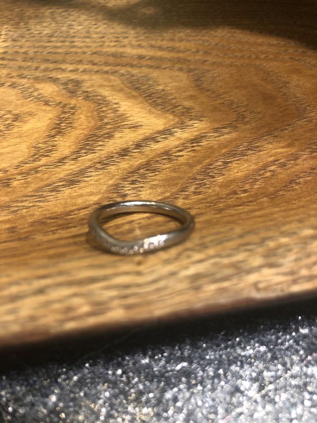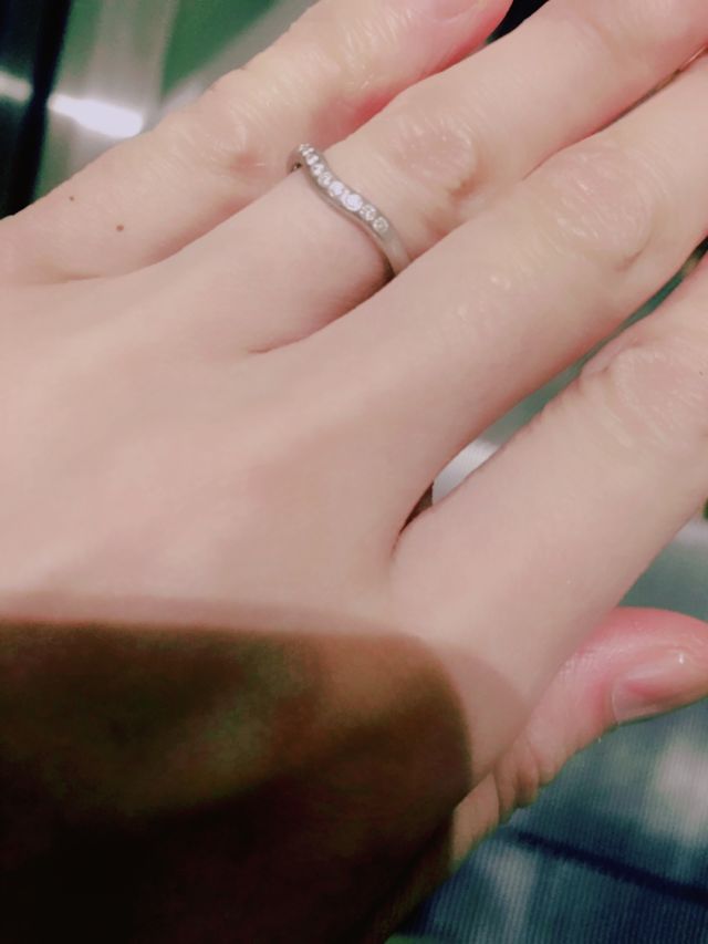 結婚指輪は日常生活でもずっとつけていたいと思っていたので、突起が少なく、シンプルなデザインのものを探していました。しかしいろいろと試着するうちに、ダイヤがついているもののほうが毎日幸せな気持ちになれそう・・!と思い、あれこれ試した結果、一番しっくりきたエルサ・ペレッティに決定。カーブがあるもののほうが自分の手には馴染みました。