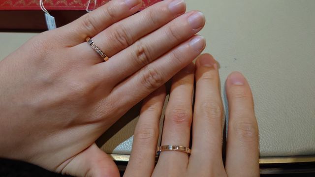 やはり、結婚指輪はリングタイプだけでなく、ダイヤが少しあるほうが魅力に感じていてさりげないダイヤに、中々ない、リングの形も気に入りました。