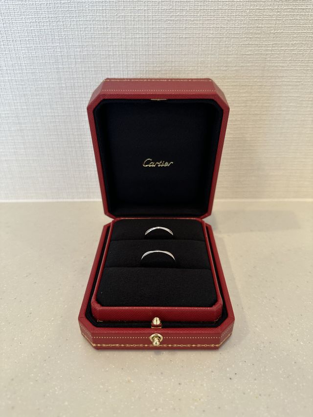 指が太めで手が大きいため、指輪の幅が2.5mmのものを探していました。年をとっても指にしっくりくるデザインがよく、ダイヤなしのストレートの指輪を希望していました。また、誰もが知っているブランドが良く、ダイヤなしストレートで2.5mmの指輪を取り扱っていたのがカルティエだったのでこの指輪に決めました。