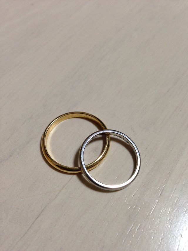 同じデザインですが、主人はイエローゴールド、私はプラチナを選びました。