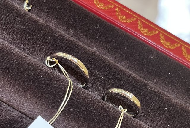 Cartierの1895を試着。元々シンプルで飽きのこないデザインが好みだったので、1895のデザインはぴったりでした。指輪の太さがしっくりこなかったので購入はしませんでしたが、とても素敵な指輪だと思います。