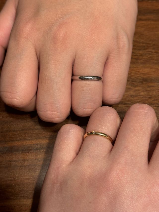 最初のリングは流行り廃りのないオーソドックスな指輪を探していました。プラチナで検討していましたが、試しでつけてみたゴールドの指輪に心を奪われたのと、ゴールドの方が私の肌には馴染んでいるような気がしたのでゴールドに決めました。普段のアクセサリーとも合わせやすくオシャレになるので気に入っています。