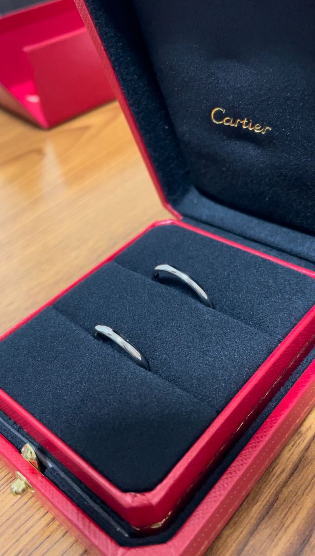 デザインはシンプルで、外見からはっきりとCartierとは分からないけれど、長く着けられて着け心地も良い物を選びました。輝きがしっかりとあり、ふと目に入ると結婚を実感出来て嬉しくなる、飽きがこないデザインです。