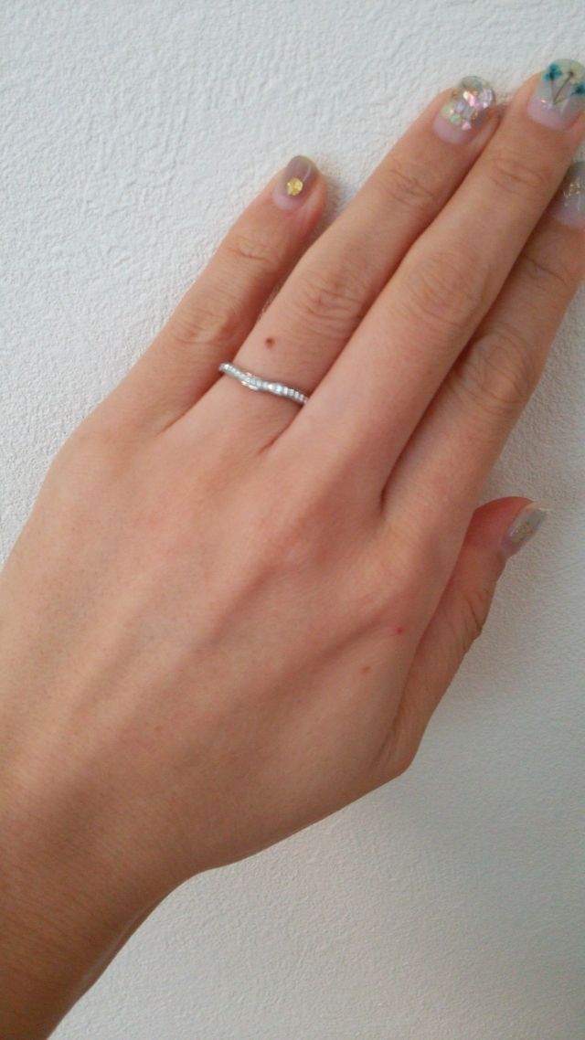 また、緩かなカーブが優しい雰囲気にしてくれるのと、お店の方が指が長く見えますよとおっしゃっていたのも購入の決め手になりました。