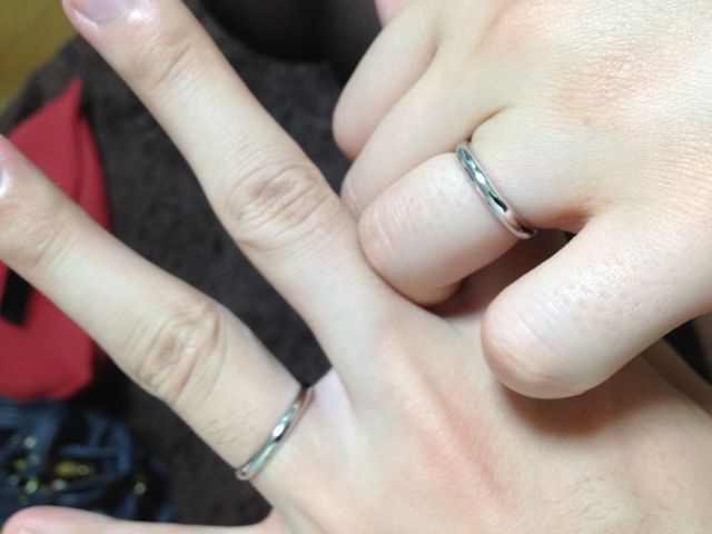 個人的にはエタニティリングのデザインがカワイイと思っていたのですが、せっかくの結婚指輪なので旦那さんとお揃いでつけられるということに重点をおいて、最終的にはこの指輪に決めました。