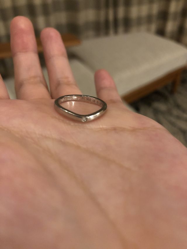 女性の指輪は小さなダイヤが3粒入っているものを選びました。裏、面でどちらを前にしてもつけられて、オシャレです。アフターサービスも安心なカルティエを選びました。