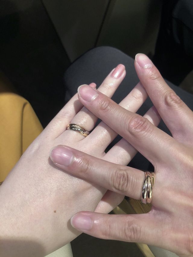 サイズ違い、デザイン違いなど一つ一つ試着でき、どれが最も手にフィットするか時間をかけて相談することができました。トリニティはリング幅によってボリューム感が大きく異なるので必ず店舗で試着したほうがいいです。