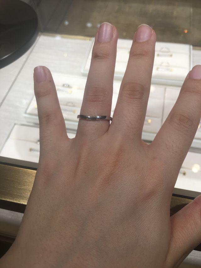 バレリーナは表面と裏面、気分によって変えられるのが良いなと思いました。カルティエのロゴが目立つのかと思っていましたが、さりげないので付けやすいと思います。少しカーブぎみなのも、指がきれいに見えて良かったです。