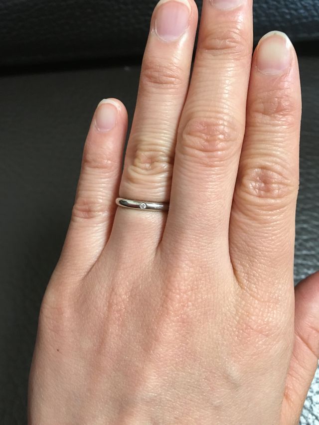 装飾が施されていると家事をしているうちに傷が気になるかと思い、ダイヤが1つだけあるものに。