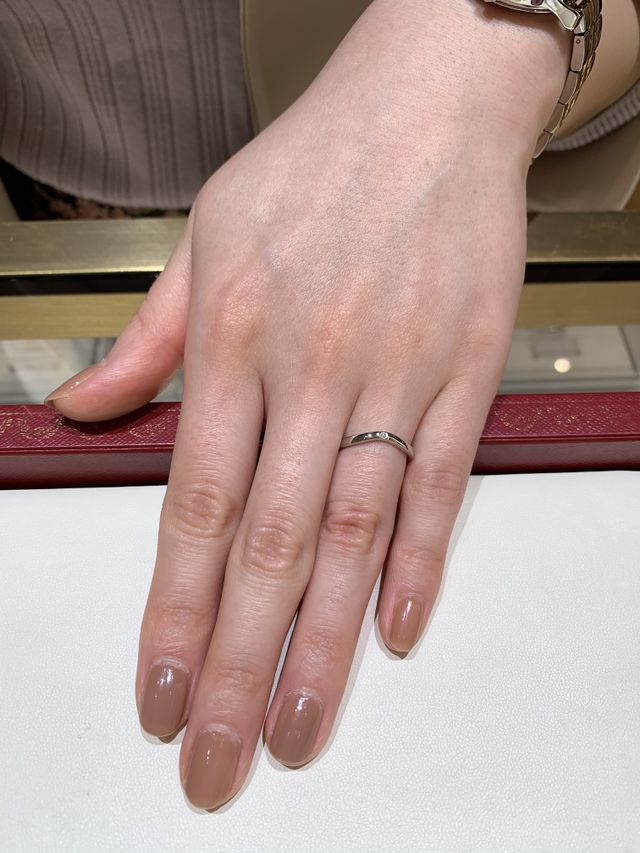高級ブランドなので入る前に緊張しましたが、店員さんがすぐに声を掛けてくださって案内してくださいました。他の高級ブランドでは写真を撮ってくれませんでしたが、カルティエの店員さんは写真を撮ってくださり、写真で指輪が綺麗に見える角度を教えてくれました。さすがの接客でした!