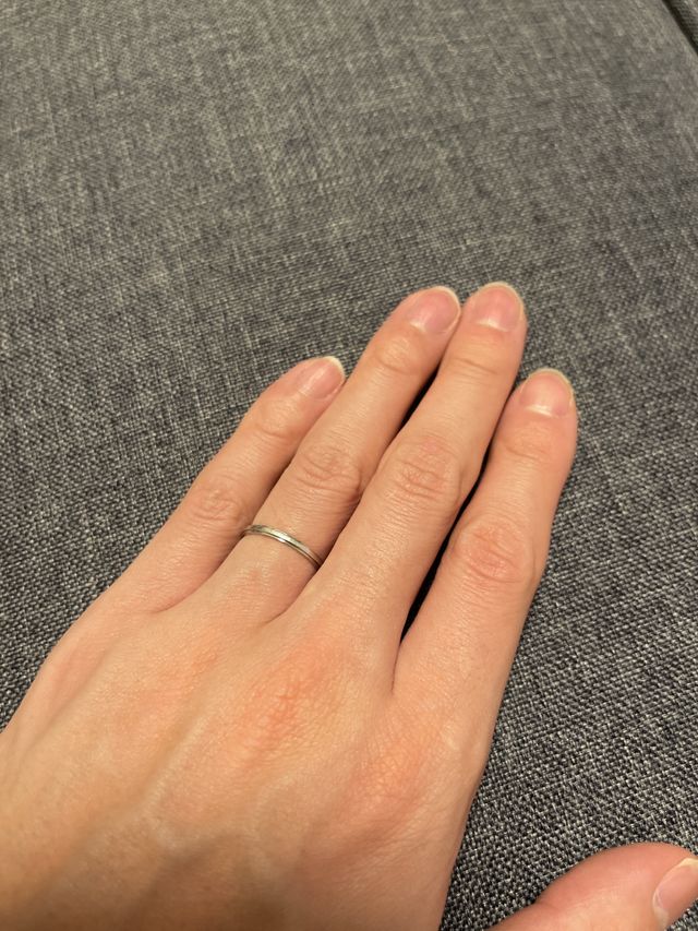 お互いの指が細い事から細身のリングを選びました。
