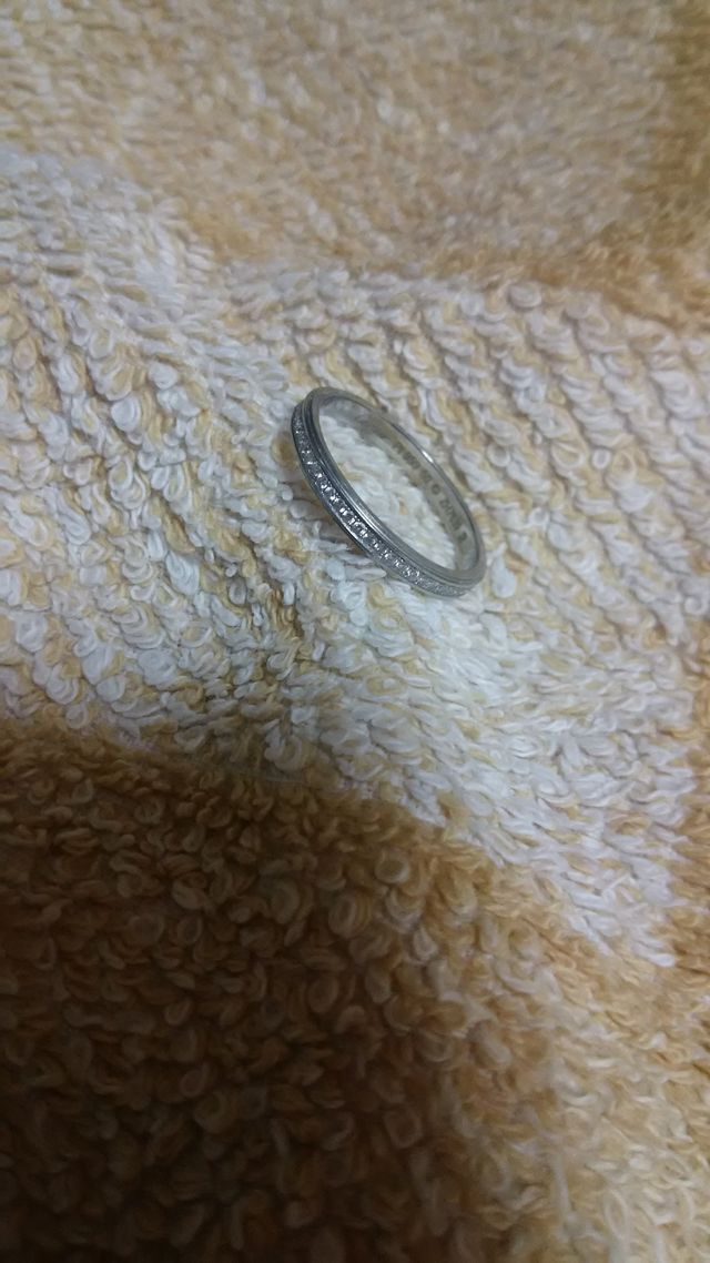 妻用の結婚指輪です。婚約指輪と違い、普段ずっと身に着ける結婚指輪なので、年を重ねても指になじむようなデザインを選んでいました。中にはCartieとリングにブランドを主張するかのようなデザインのものもあったのでこれらは候補から外しました。また、ダイヤのついていないシンプルなリングはさすがに味気ないと思ったようで、最終的には全周に小さなダイヤモンドをあしらった可愛らしいデザインのリングをチョイス。今も大満足のようです。