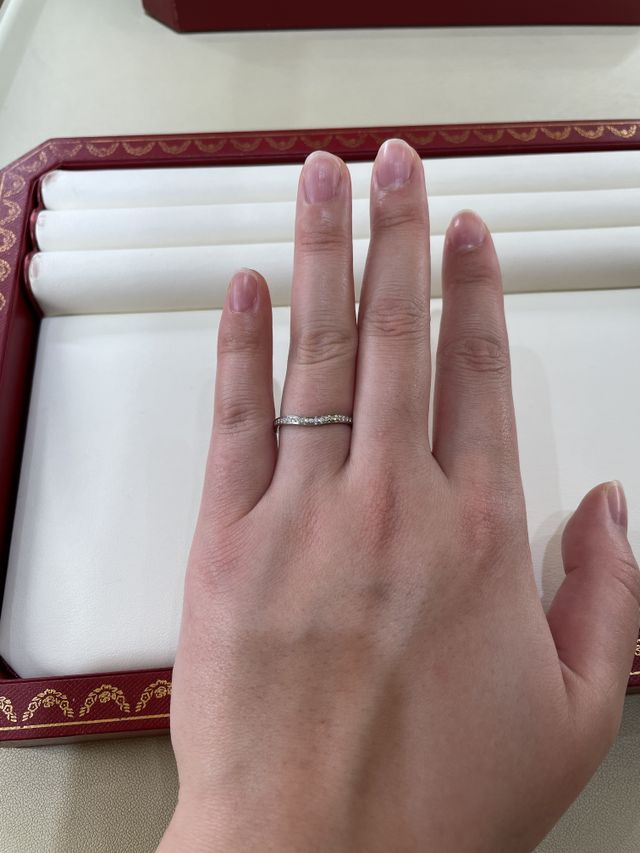 また表面はウェーブ(ハーフエタニティ)、裏はストレートカルティエの刻印が挟まれており、とても可愛いです。