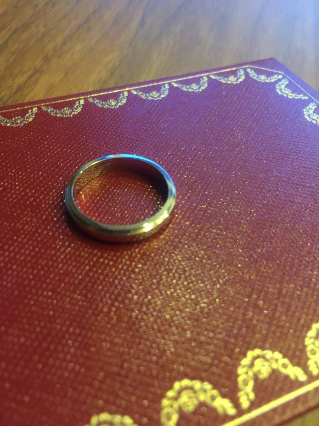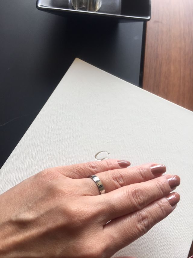以前よりマリッジリングはカルティエで と考えていましたが、いかにもカルティエ!というのは嫌でシンプルな物を探していました。雑誌等を見て検討してましたが、実際に店頭に行くとシンプルですが存在感のある太めのこのリングがとても素敵で旦那様も気に入ってくれたので購入致しました。