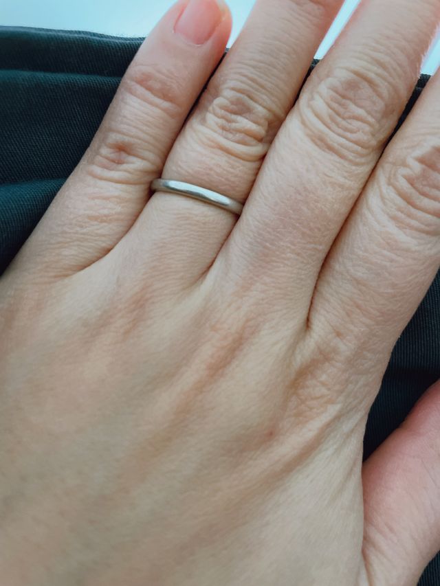 太めの指輪と細めの指輪と悩みましたが主人と両方はめてお互いに似合う方にしました。